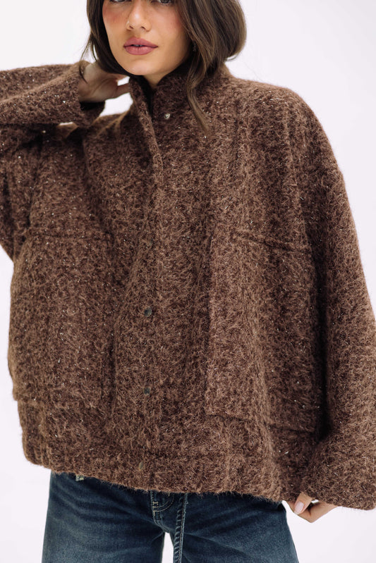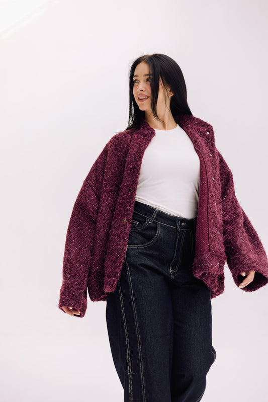 Shimmer Fluff-On Jacket - Deep Burgundy
