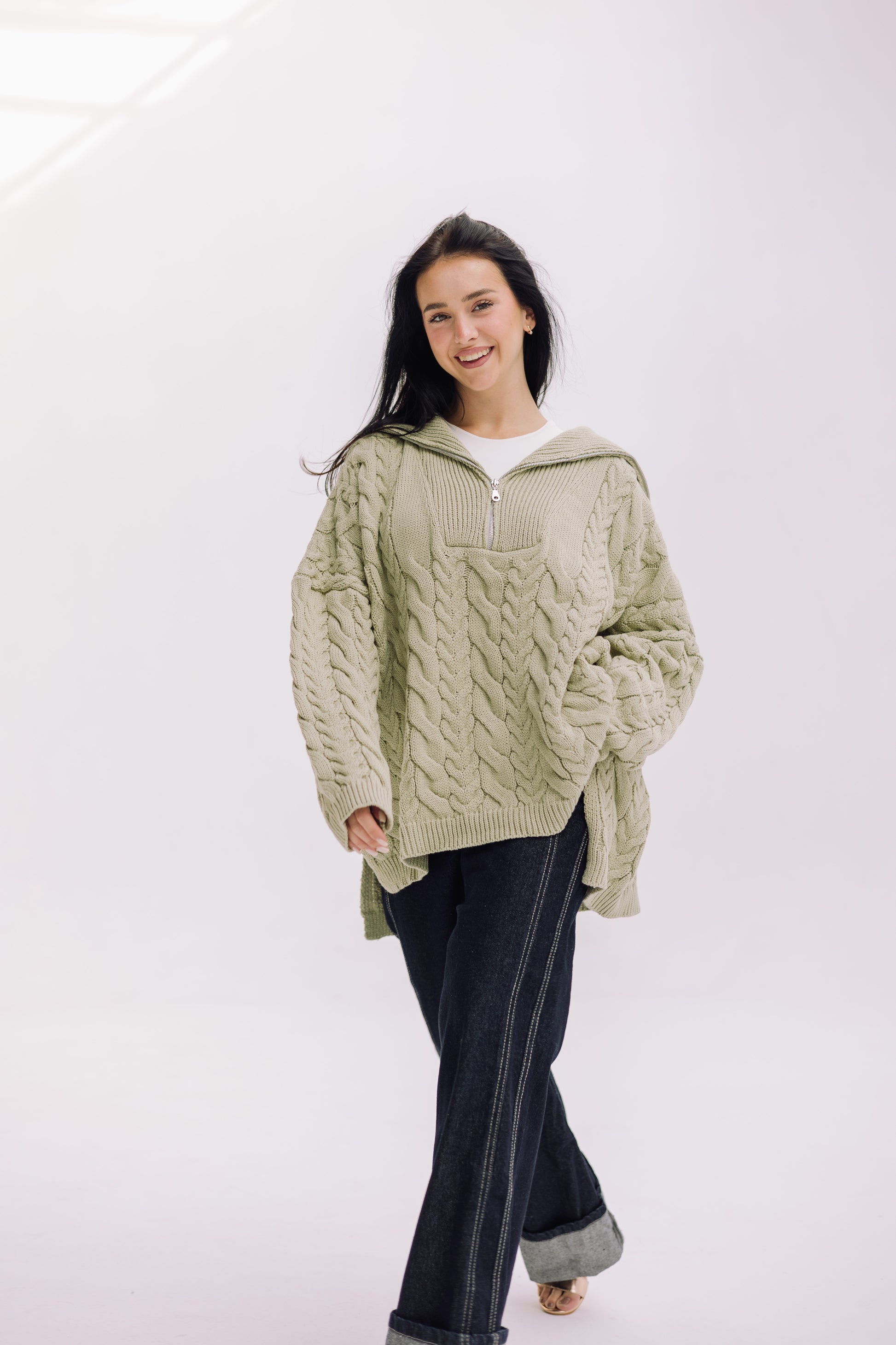 Braided Half-Zip Sweater - Basil