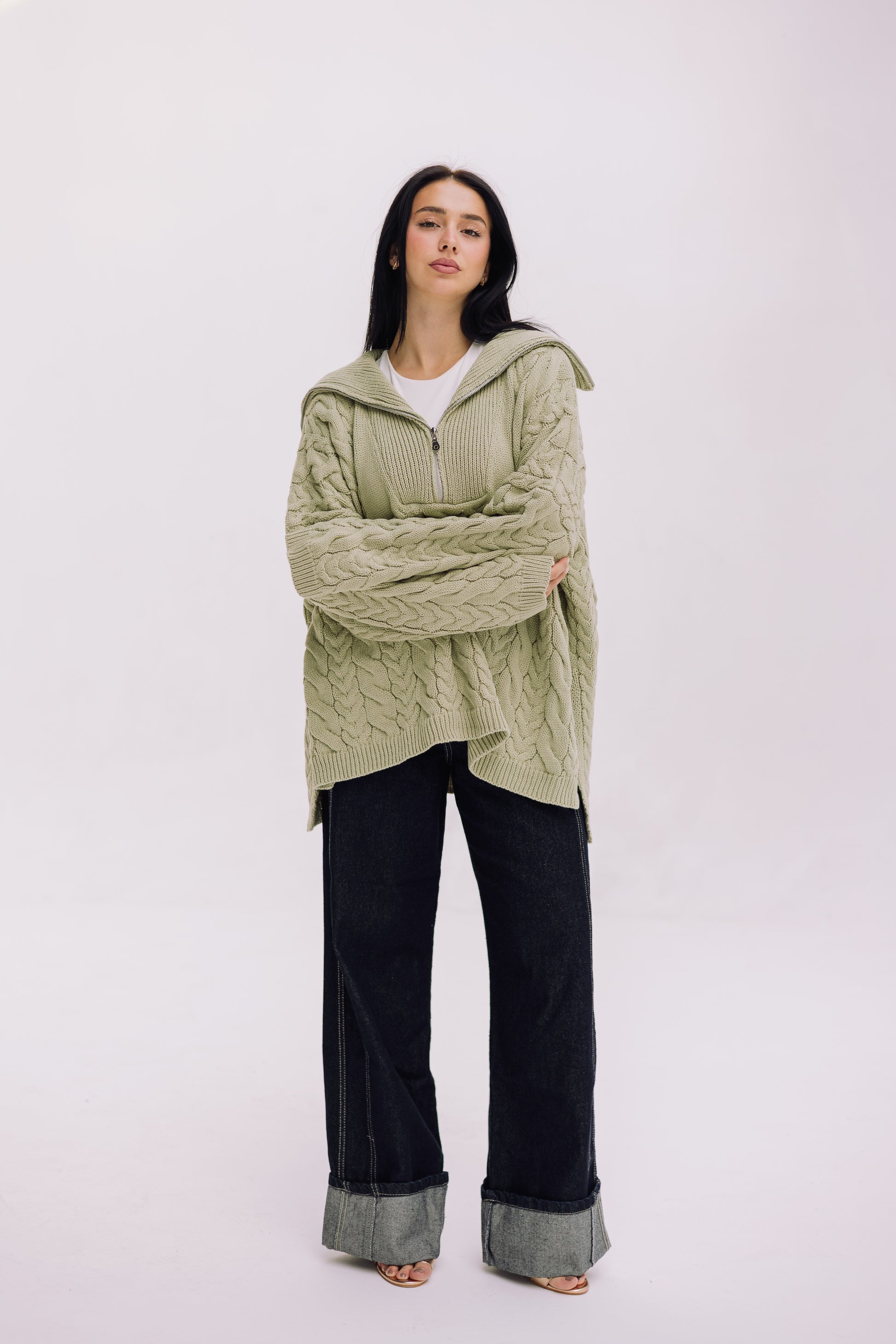 A cozy, cable-knit essential designed for effortless winter layering. Features a soft braided texture, a relaxed zip-up collar, and an oversized fit that keeps you warm without feeling heavy. Perfect for everyday wear — from casual mornings to chilly nights.