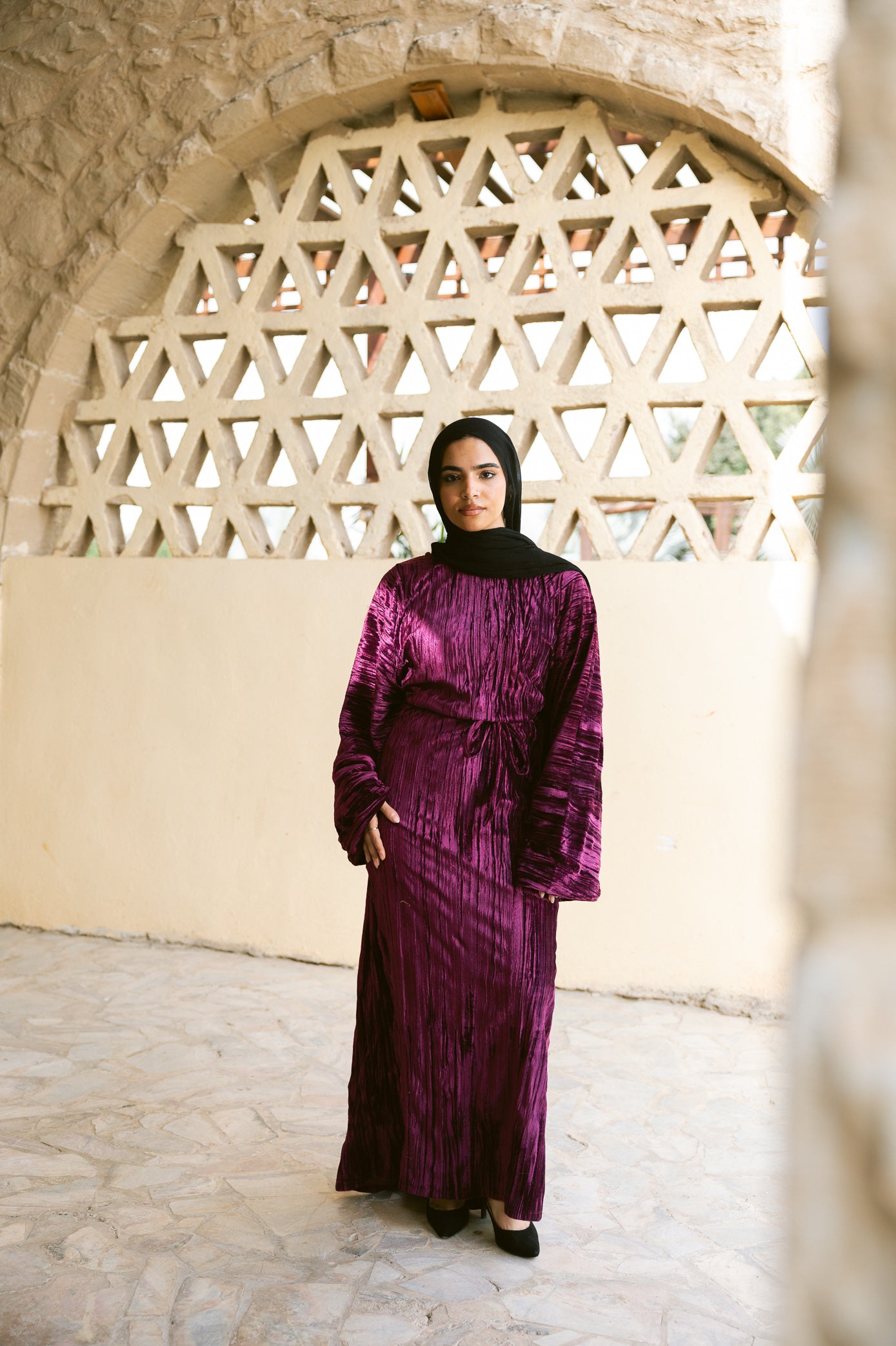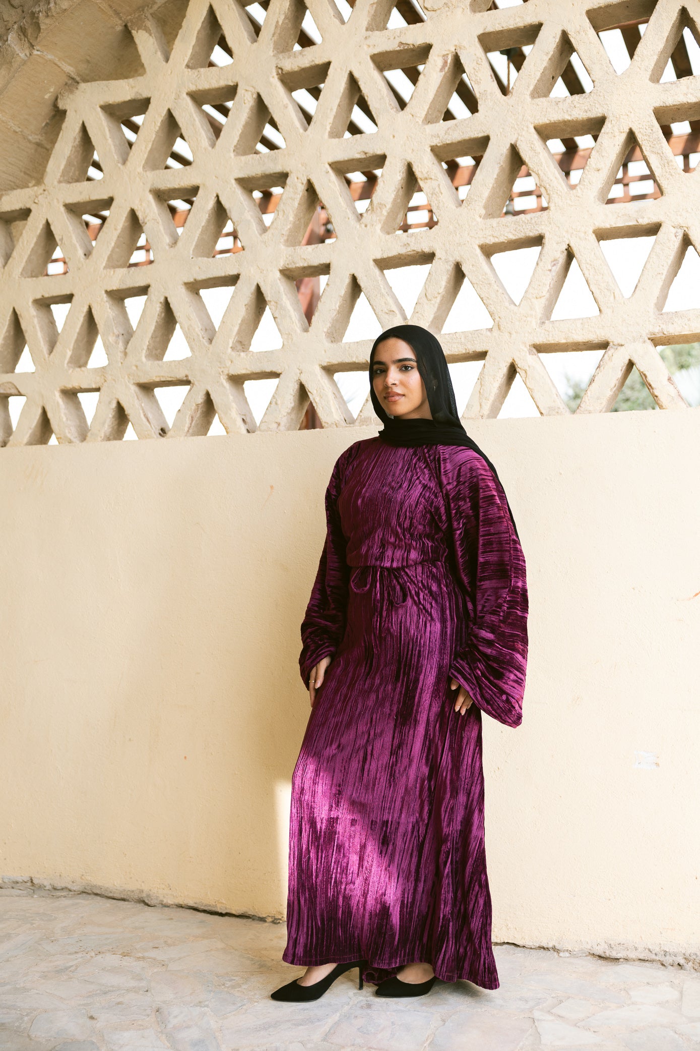 The fabric is medium to heavy weight — perfect for Ramadan evenings and winter gatherings. It’s warm, soft on the skin, and gives a luxurious velvet-like finish.