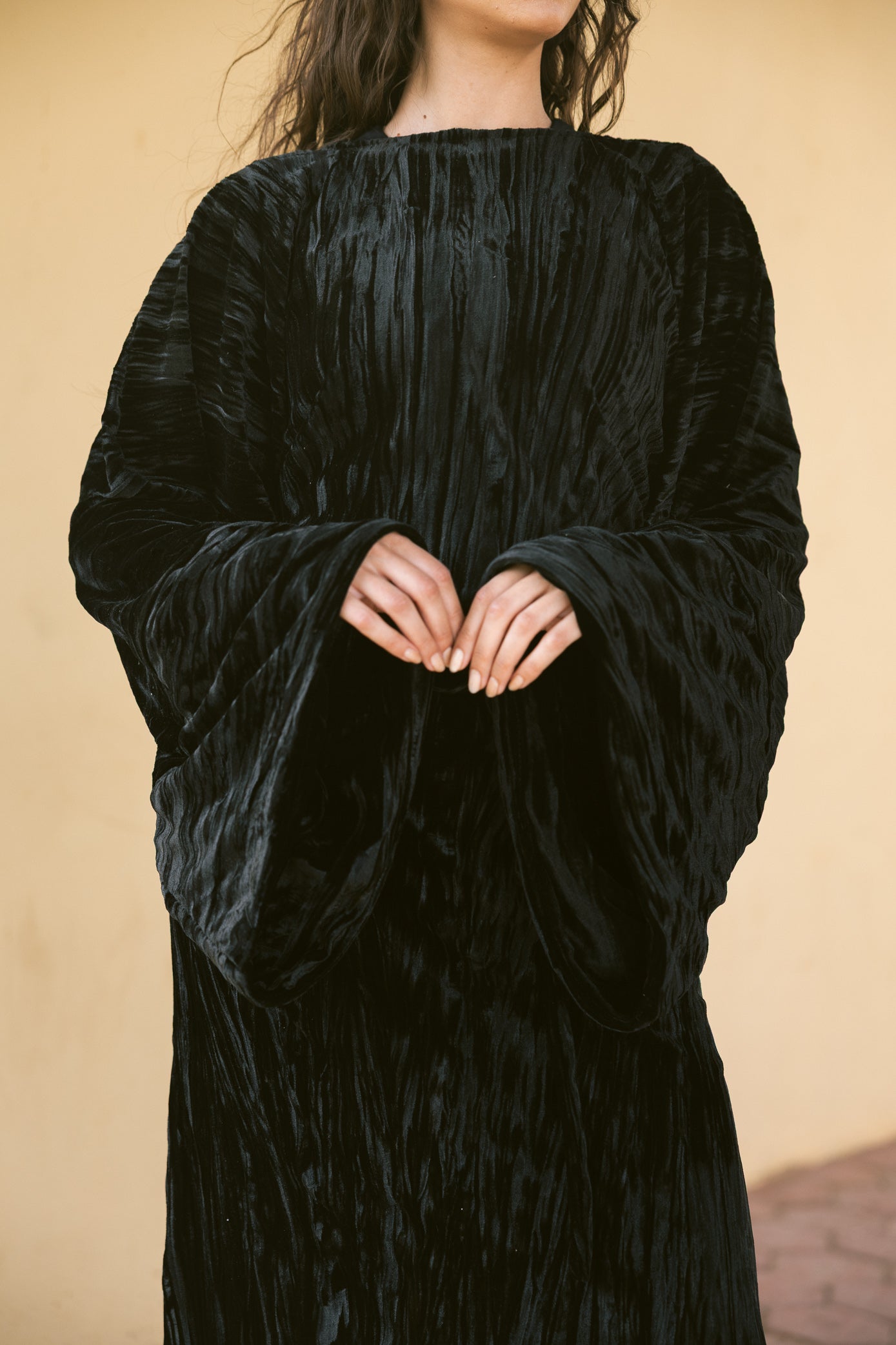 A statement piece designed to flow with elegance and comfort. The Butterfly Dress features a soft, relaxed silhouette with wide butterfly sleeves that create graceful movement with every step.