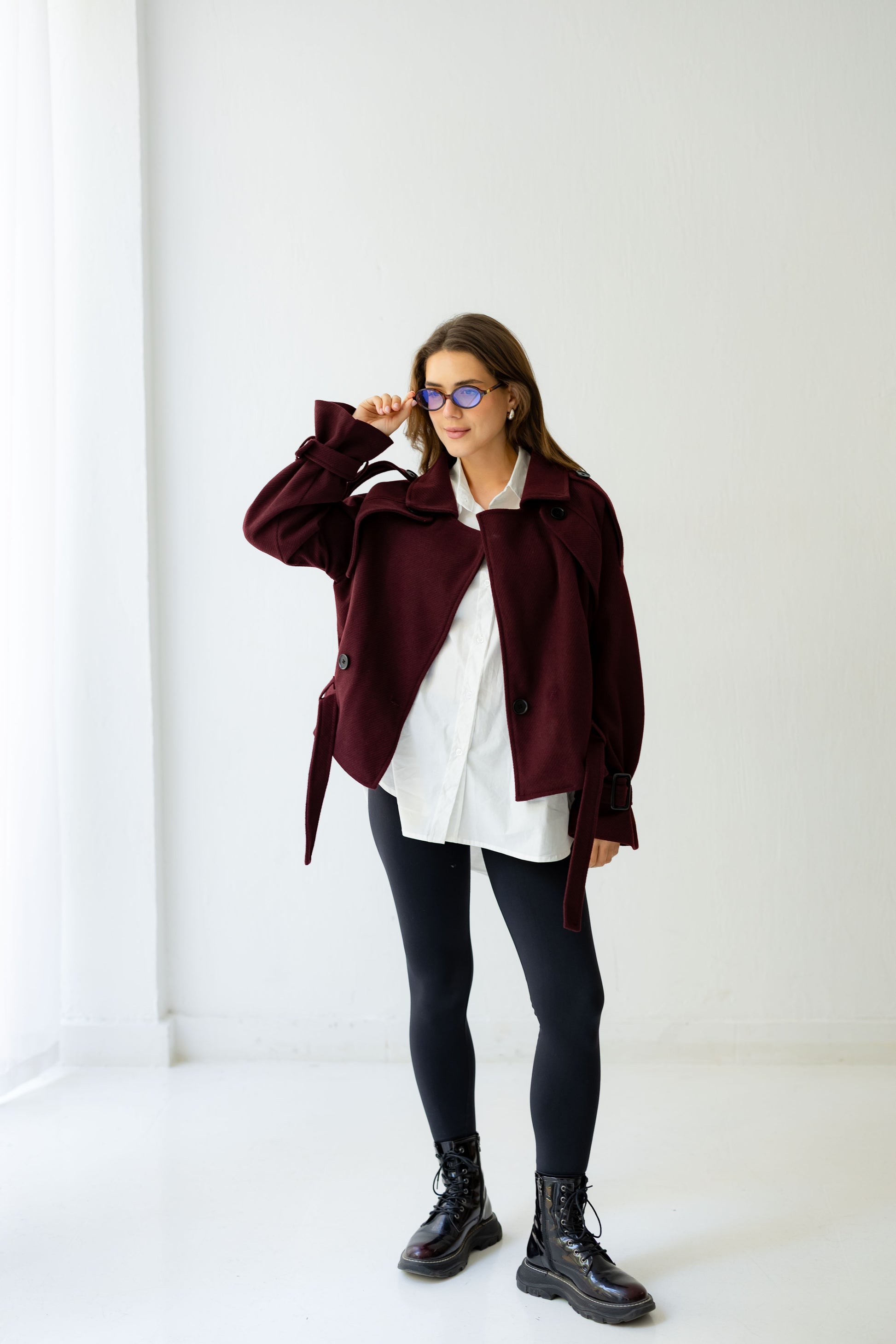 Its oversized silhouette gives a relaxed, modern feel, while the matching belt lets you adjust the fit for a more defined shape whenever you like.
