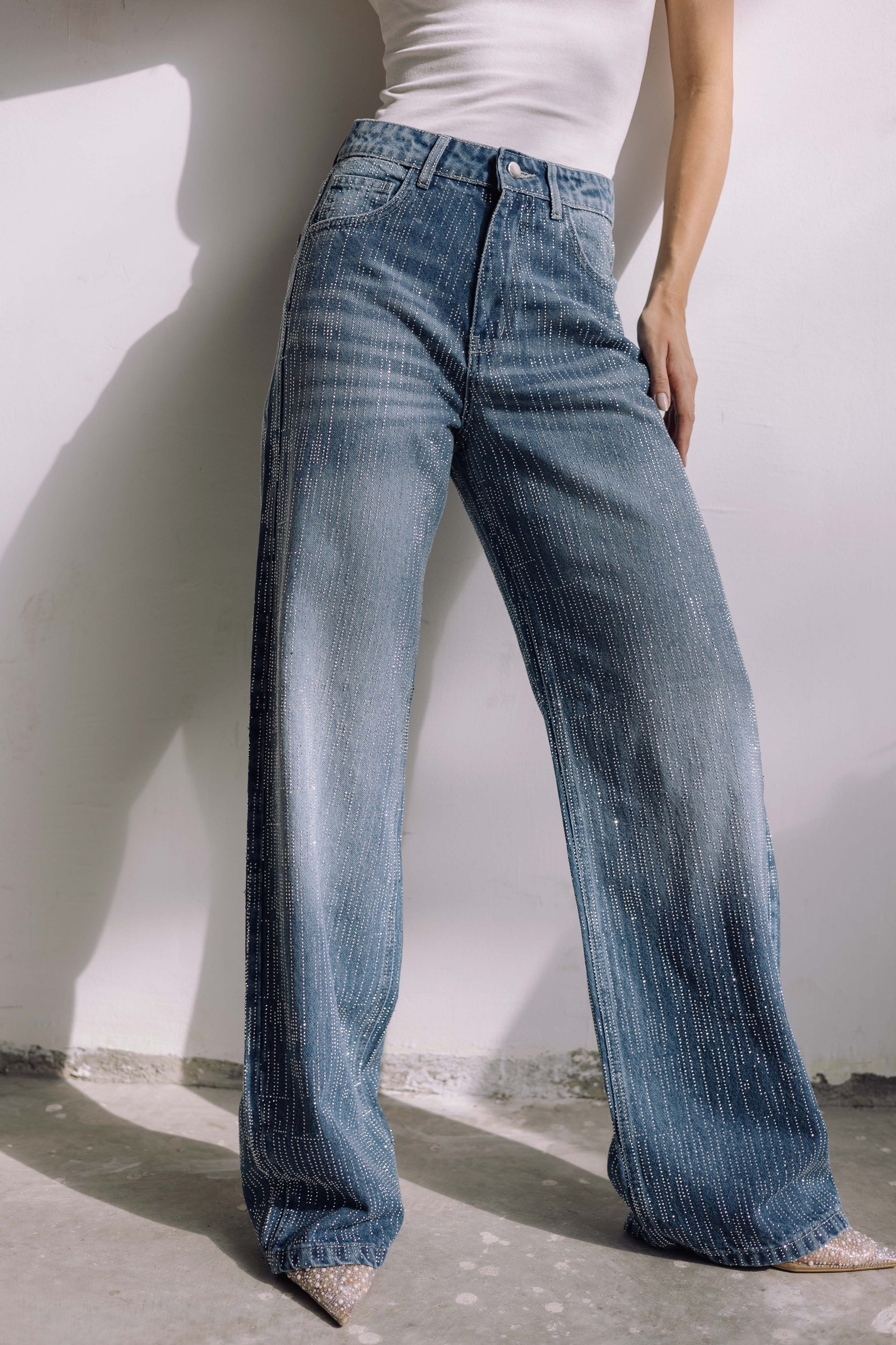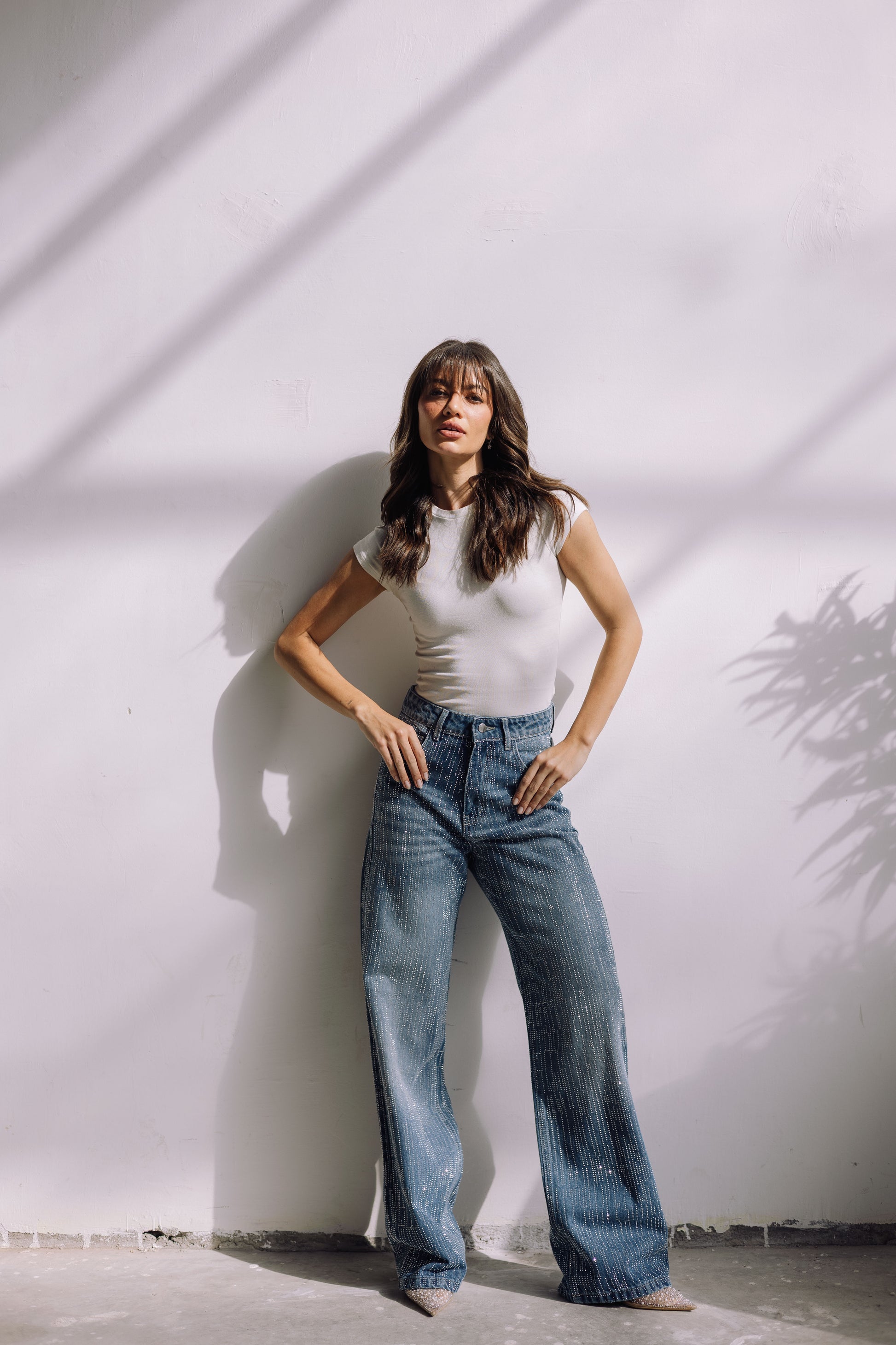 A standout wide-leg denim crafted from high-quality denim with a structured yet comfortable feel. The fabric is durable, breathable, and designed to maintain its shape while offering a flattering drape.